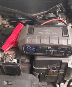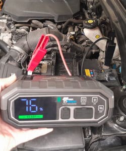 - Bước 4: Kết nối với dây kẹp bình vào bộ kích sau đó bấm nút đỏ bên sườn cho đèn xanh sáng lên.