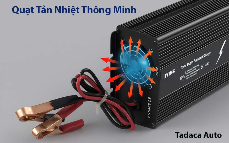- Sạc JYINS 12V có cảm biến nhiệt độ (temperature compensation) để điều chỉnh điện áp sạc theo nhiệt độ môi trường/ắc quy nếu cần. Phía sau của sạc còn có quạt tản nhiệt thông minh, khi nhiệt độ trên 40 độ C quạt sẽ làm việc giúp nâng cao hiệu suất khi sử dụng.