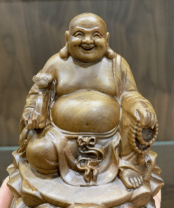 - Tượng phật di lặc được làm từ gỗ huyết long cao quý, đây là loại gỗ thơm quý hiếm xa xưa chỉ có vua mới sử dụng.