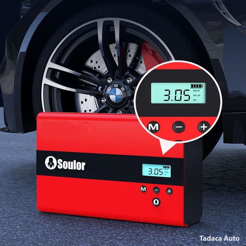 Kích nổ kiêm bơm lốp Soulor là sản phẩm được tích hợp rất nhiều tính năng thông minh như: Bơm lốp, kích bình ắc quy, đèn pin chiếu sáng, sạc pin dự phòng, đo cảm biến áp suất lốp. Với ưu điểm là có thiết kế nhỏ gọn, dễ dàng sử dụng, khi để trên không chiếm nhiều diện tích. Máy được trang bị động cơ công suất mạnh, dòng điện kích lớn nên rất dễ dàng kích nổ được cho nhiều các loại xe hiện nay từ 4 đến 7 chỗ, động cơ dầu và động cơ xăng.