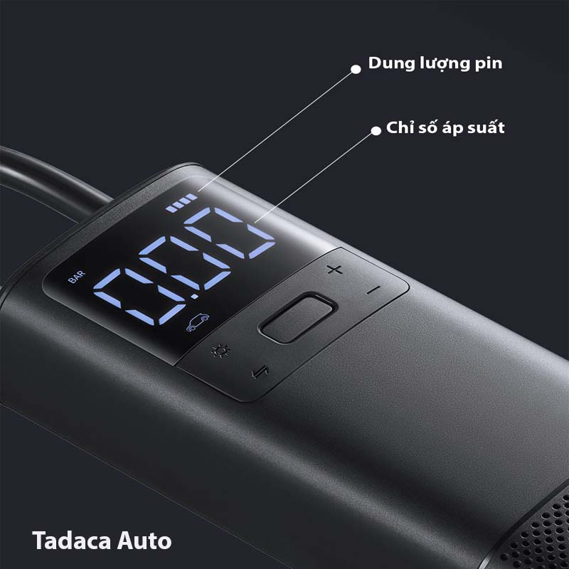 Bên cạnh, máy bơm lốp xe mini 70mai còn trang bị thêm một màn hình LED có độ lớn lên đến 2.2 inch. Hiển thị số lượng pin còn lại và chỉ số áp suất tại thời điểm, cũng như các chế độ bơm mà máy đang hoạt động. Độ sáng của màn hình này cũng rất lớn để cho dù có ở ngoài trời nắng gắt thì vẫn có thể nhìn thấy các thông số một cách dễ dàng.