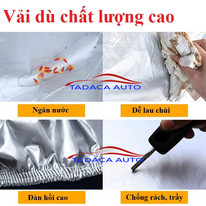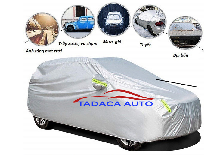 Bạt phủ ô tô vải dù cao cấp có tính năng che mưa, che nắng và chống tia UV rất tốt cho xe hơi, Với bên ngoài được làm từ chất liệu tráng nhôm giúp phản ánh nắng rất tốt và cách nhiệt giúp bảo vệ nội thất trong xe ô tô. Sản phẩm tương thích cho tất cả các loại xe từ 4 đến 7 chỗ.