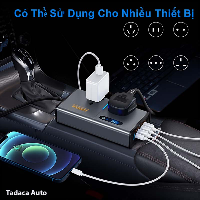 - Bộ biến tần 12V sang 220V được trang bị 01 công sạc nhanh PD công suất 30W, 01 cổng USB sạc nhanh 3.0 và 02 cổng sạc USB có công suất sach 18W giúp bạn kết nối nhiều thiết bị cùng lúc. Sản phẩm tích hợp quạt tản nhiệt duy trì nhiệt độ ổn định cho thiết bị.