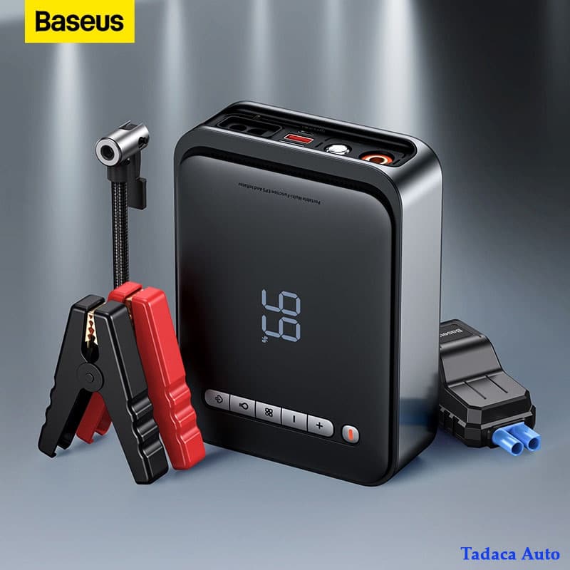 Bơm lốp kiêm kích bình ô tô Baseus là một sản phẩm không thể thiếu trên mỗi chiếc xe. Công dụng chính dùng để bơm lốp và kích bình ắc quy khi xe bị hết điện. Sản phẩm có dung lượng pin lên đến 8000mAh và dòng điện kích lên đến 1000A, nên kích được hầu hết các dòng xe ô tô tầm trung hiện nay.