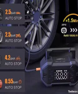 - Công dụng tiếp theo là dùng để bơm lốp cho ô tô, xe máy khi áp suất lốp bị hết hoặc bị thủng lốp. Từ đó sẽ giúp lái xe an toàn hơn khi đi trên đường, bơm được tích hợp chế độ tự động ngắt khi sạc đầy nên rất thông minh.