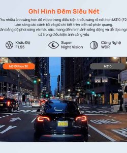 - Camera hành trình ô tô 70mai M310 Plus 3K còn được trang bị thuật toán Super Night Vision độc quyền do 70mai tự phát triển. Công nghệ này hoạt động thông minh bằng cách tự động làm sáng khung cảnh, đồng thời xử lý triệt để hiện tượng lóa sáng (cháy sáng) trên các biển số xe phản quang – vấn đề thường gặp tại Việt Nam và quốc tế – giúp giữ lại trọn vẹn các thông tin quan trọng. Kết hợp cùng công nghệ WDR (Wide Dynamic Range) giúp cân bằng độ phơi sáng và tối ưu hóa màu sắc