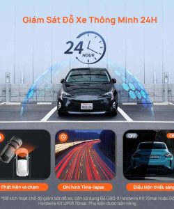 - Giám sát 24/7: Bảo vệ xe an toàn khi đỗ, tự động ghi hình khi phát hiện va chạm.