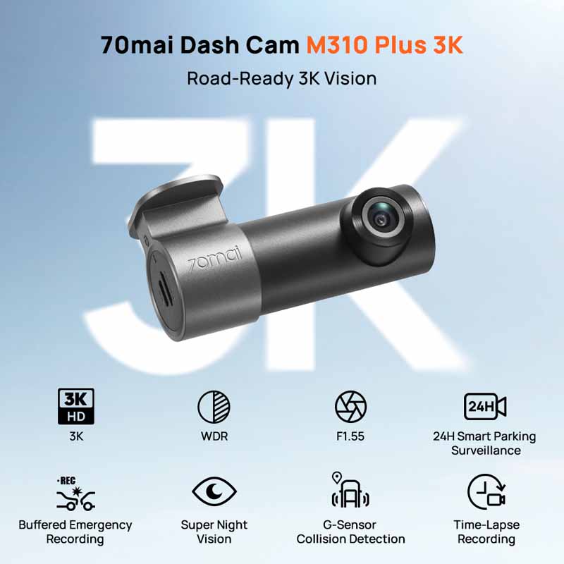 - Camera hành trình 70mai M310 Plus có độ phân giải 3K (1620P) tinh tường và góc quay rộng 139°, mọi khoảnh khắc đẹp đẽ hay những sự cố bất chợt đều được lưu giữ trọn vẹn và rõ ràng nhất. Dù ngày nắng gắt hay đêm muộn, M310 Plus vẫn cần mẫn ghi lại từng chi tiết, để bạn luôn vững tay lái với một sự an tâm trọn vẹn phía sau.