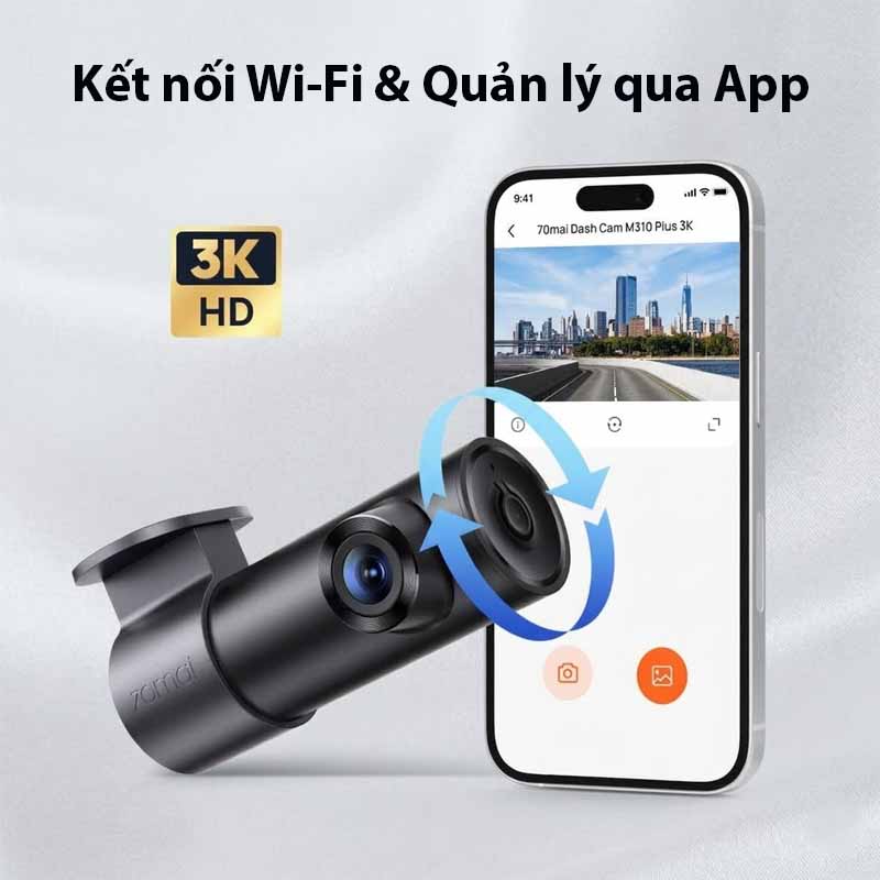 - Kết nối Wi-Fi & Quản lý qua App dễ dàng làm chủ thiết bị ngay trên điện thoại thông qua ứng dụng 70mai. Nhờ tích hợp Wi-Fi, việc xem lại, tải xuống hay chia sẻ video hành trình trở nên cực kỳ nhanh chóng và mượt mà.