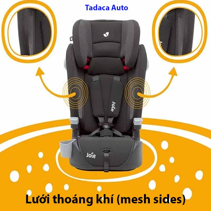 - Bên sườn ghế được bố trí lưới thoáng khí (mesh sides) giúp không khí lưu thông tốt hơn, giúp trẻ thoải mái ngay cả khi nhiệt độ cao. Ghế còn tích hợp khay đựng cốc (cup-holder) bên hông tiện để bình nước hoặc đồ uống nhỏ cho bé.