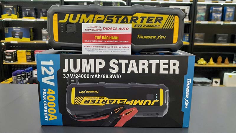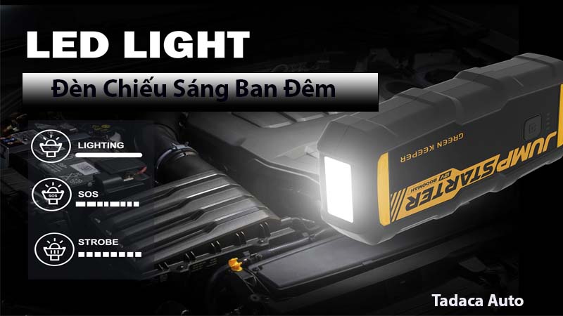 - Bộ kích bình TX24 – 4000A còn trang bị 1 đèn LED chiếu sáng ban đêm và tính năng đèn khẩn cấp SOS sẽ giúp bạn xử lý những tình huống vào ban đêm hiệu quả. Sản phẩm có chức năng chính là kích bình khởi động xe hơi và sạc điện thoại dự phòng.