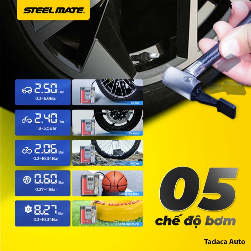 - Tên sản phẩm: Kích bình bơm lốp Steelmate.