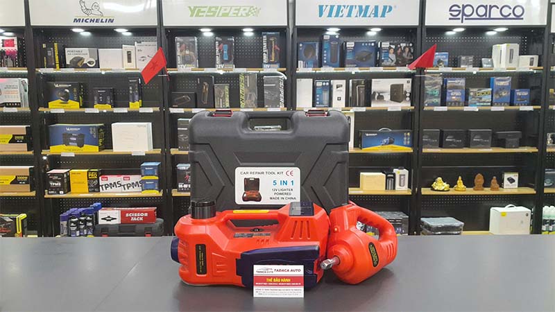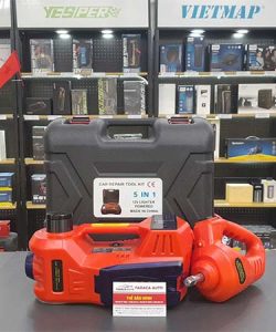 Kích gầm kiêm bơm và tháo lốp ô tô là sản phẩm đa năng 5 trong 1 gồm: Nâng gầm xe, bơm lốp xe, tháo lốp xe, đo áp suất lốp, đèn chiếu sáng và đèn SOS khẩn cấp. Đây là một trong những phụ kiện không thể thiếu trên mỗi chiếc xe ngày nay. Máy được trang bị bơm điện tử tự ngắt thông minh và nâng được cho xe có trọng tải tối đa là 5 tấn.
