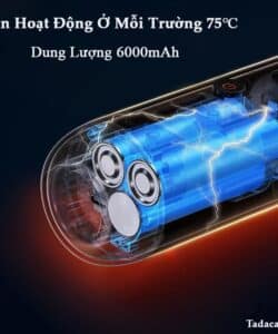 - Sản phẩm có dung lượng pin lớn là 6000mAh nên thời gian sử dụng lâu, lõi lọc được trang bị màng lọc HEPA cao cấp.