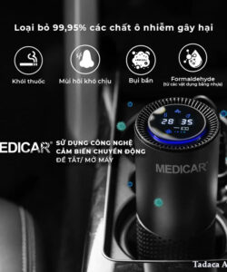Máy lọc không khí ô tô Medicar là một trong những sản phẩm không thể thiếu trên mỗi chiếc xế yêu. Medicar là thương hiệu Việt Nam chuyến sản xuất về phụ kiện ô tô, sản phẩm có thiết kế nổi bật, sang trọng tích hợp màn hình LED hiển thị các thông số rõ ràng, hiệu quả làm việc của máy đạt 99,98% khi lọc các hạt bụi mịn.