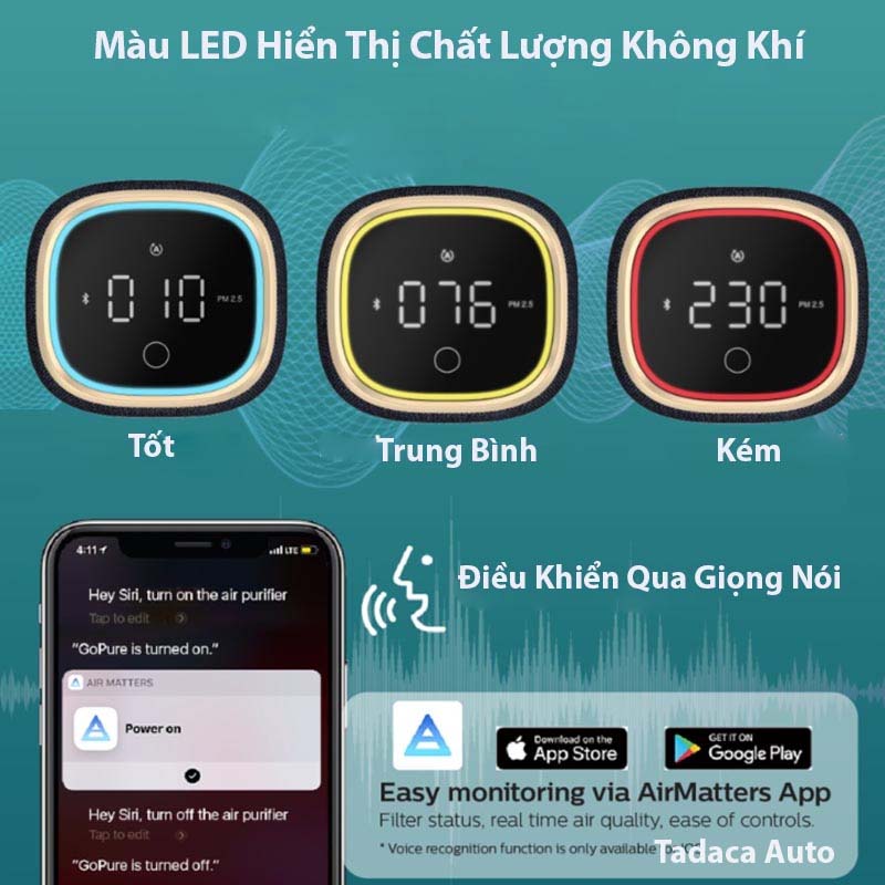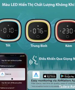 - Sản phẩm còn tích hợp công nghệ điều khiển từ xa qua ứng dụng app Air Matters trên điện thoại chạy hệ điều hành Android hoặc IOS. Ra lệnh giọng nói với trợ lý ảo Siri trên iphone hiện đại.