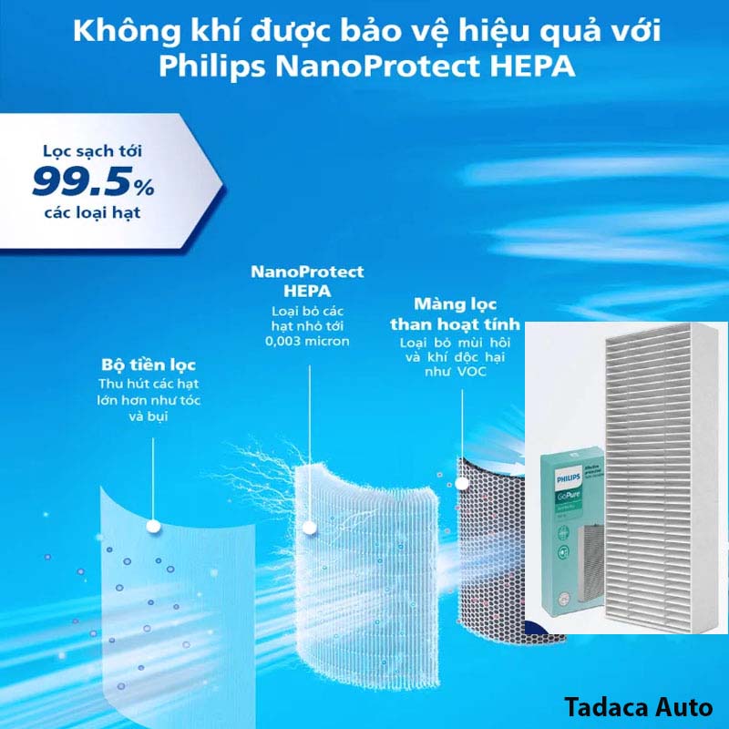 - Máy lọc không khí ô tô Philips S7601 sử dụng bộ lọc SaniFilter Plus 130 đời mới nhất của Philips. Lọc hiệu quả các hạt nhỏ đến 0,004um, bao gồm các loại vi rút và vi khuẩn tức là nhỏ hơn 40 lần so với Virut SARS-Corona, nhỏ hơn 100 lần so với các loại virut thông thường.