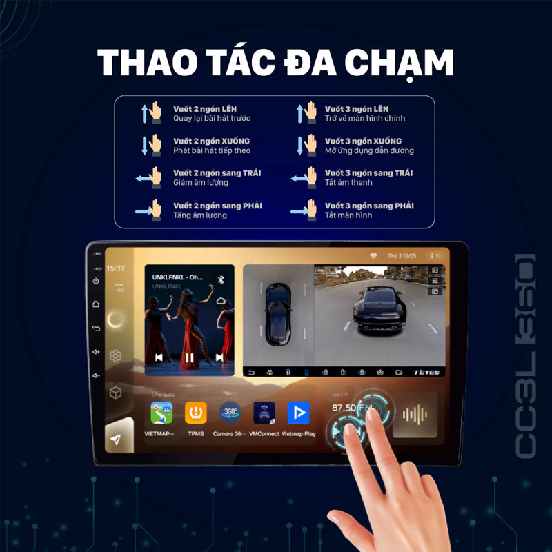 Trong khi đó, Teyes CC3L 360 mang đến lựa chọn nâng cao với tính năng quan sát toàn cảnh nhờ module camera 360 độ được tích hợp sẵn. Phiên bản này giữ nguyên hiệu năng ổn định và tiện ích hiện đại của CC3L, đồng thời bổ sung khả năng hỗ trợ an toàn khi lái xe – đặc biệt hữu ích trong các tình huống lùi, đỗ hoặc di chuyển trong không gian hẹp. Với camera 360 độ và các công nghệ hỗ trợ lái, thiết bị là giải pháp toàn diện giúp tài xế nâng cấp trải nghiệm lái trọn vẹn hơn.